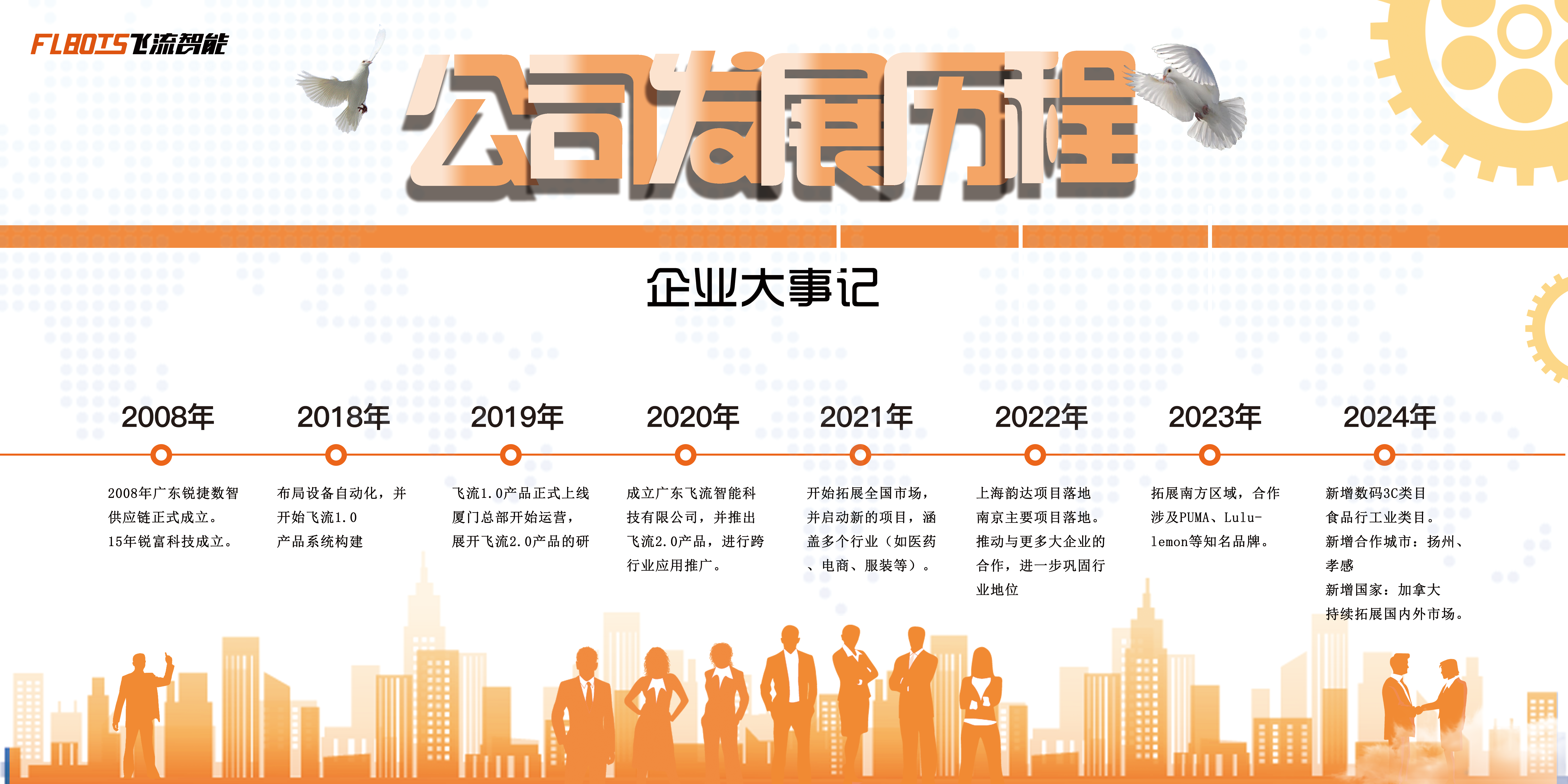 广东飞流智能科技有限公司创立于2020年,是一家专注于智能仓储输送和分拣领域的应用型科技企业。依托团队二十余年物流仓储与装备行业经验,开发多个拳头产品,为上百家企业提供定制化解决方案,累计交付近 100万平方米智能仓储的输送和分拣系统,累计分拣包裹量已突破 20亿件,已成为国内智能分拣领域的重要力量。