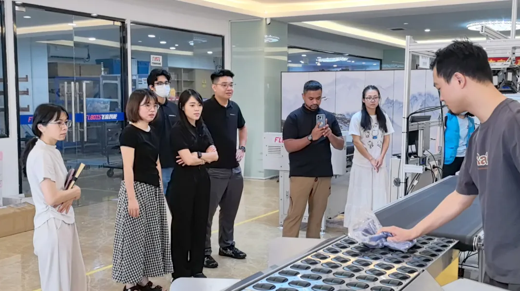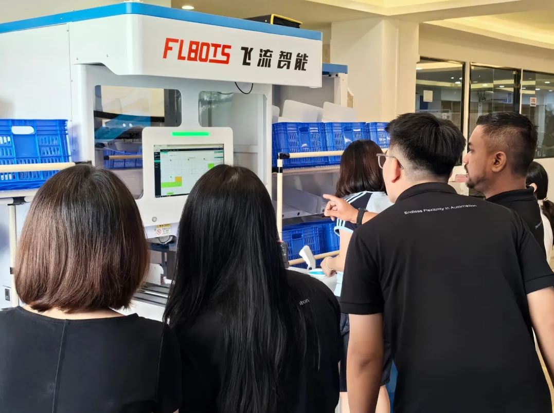 飞流智能于9月15日接待马来西亚客户代表团,来访客户参观了广州研发中心,深入了解智能分拣与仓储解决方案。团队展示了核心产品在服装、电商、医药、图书等多行业场景的应用,包括退货处理、门店出库和多品类分拣等环节的优势。系统具备自动处理异常情况的能力,如格口满载和包裹异常分流,确保流程稳定高效。客户观摩了从投件、扫描到分拣和异常处理的全流程演示,对飞流智能的研发实力、系统设计和智能化水平表示高度认可和积极评价。