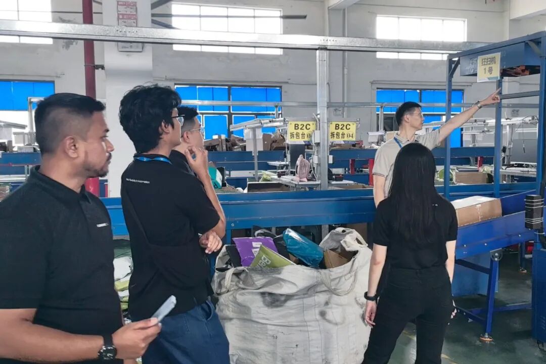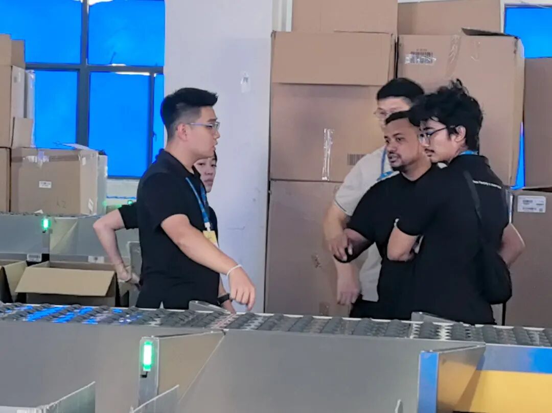9月16日,马来西亚客户代表团在飞流智能团队的陪同下,实地走进中通云仓,观摩飞流智能分拣系统在真实场景下的运行表现,并在回到公司后参加了更深入的维保培训。客户对飞流智能的系统效率、稳定性及模块化设计给予高度肯定,称赞这是值得信赖的智慧分拣方案。