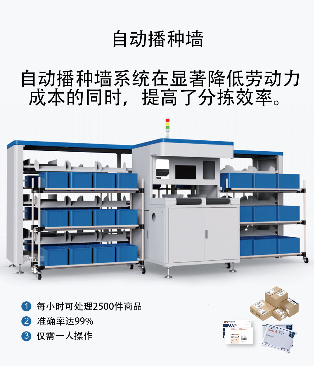播种墙设备可以有效提高订单的交付效率,减少人员依赖和人员使用成本。